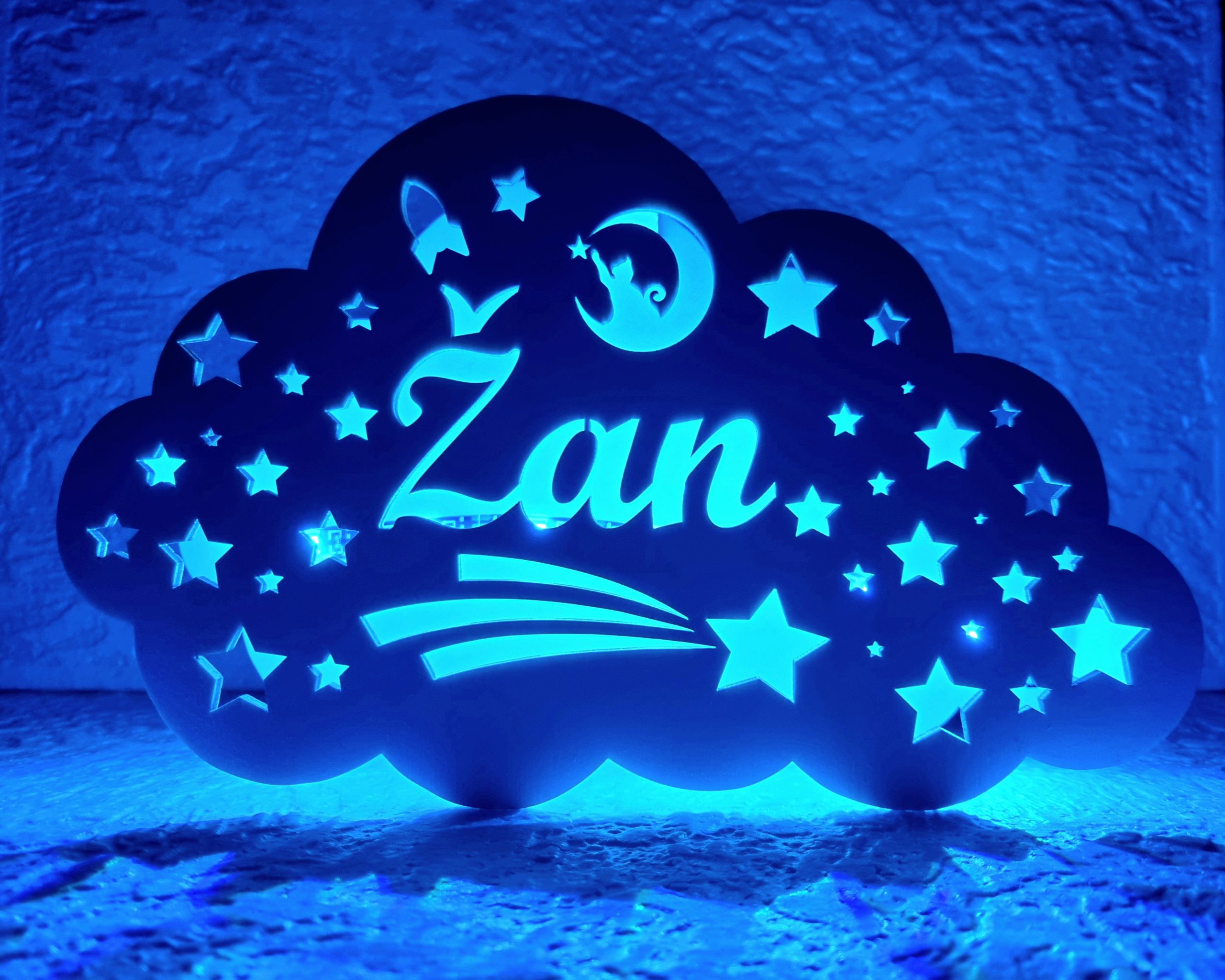Lesena LED lučka v obliki OBLAKECA je izvirno darilo, ki ga lahko podarite vaši družini, otrokom, prijateljem ali sodelavcem. Lučka je idealna kot nočna lučka, namizna svetilka ali kot dekoracija v sobi, otroški sobi, dnevni sobi. Lučka je odlično darilo za rojstne dneve, božič, poroke, obletnice, valentinovo. Vsaka lučka je opremljena z USB kablom ter vgrajenim krmilnikom, s katerim lahko s pomočjo daljinskega upravljalnika izbirate med različnimi barvami, animacijami in stopnjami svetlosti.